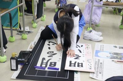 7日(火)に書初め大会がありました。新年初めの気持ちを筆にこめて一生懸命に書く姿が見られました。
