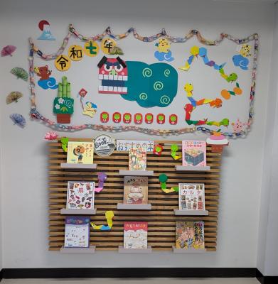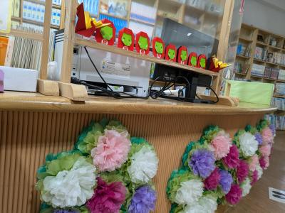 図書館の装飾が新たな年をお祝いする装飾になっています。
