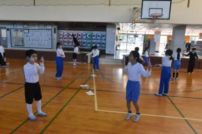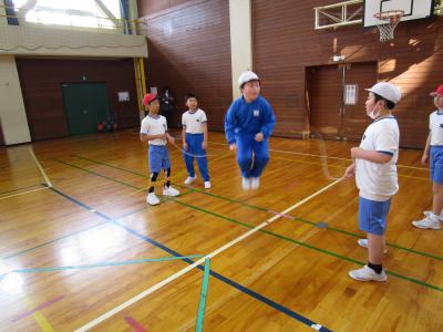 体育の授業や休み時間に、自分の目標に向かってなわとび運動に取り組んでいます。
