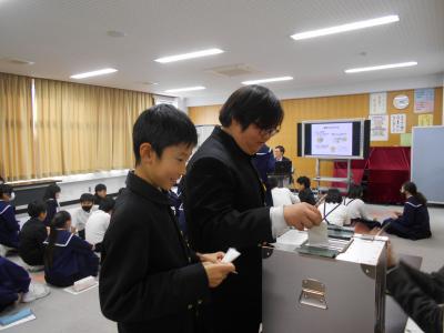 11月19日 津幡町の選挙管理委員会の方にお越しいただき模擬投票を体験しました。