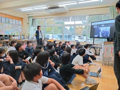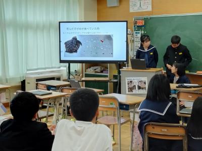 11月26日 6年生が総合的な学習の時間「SDGsについて調べよう」の中でいろいろ調べたことを、長田町小学校の6年生にオンラインで発表しました。