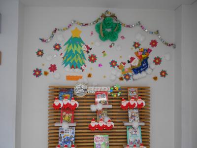 朝晩めっきり寒くなり、冬の訪れを感じるようになりましたが、図書館は心温まるクリスマス仕様の装飾になりました。リースやサンタクロースなどがかわいらしく飾られています。