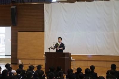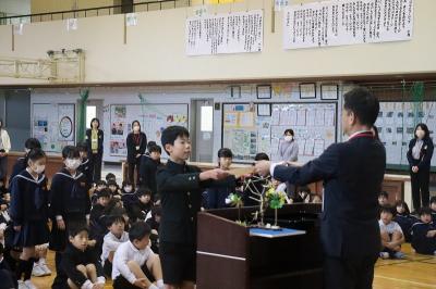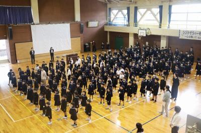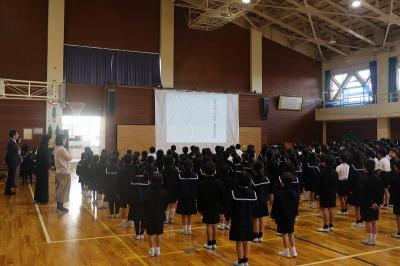 全校で校歌を歌いました。
