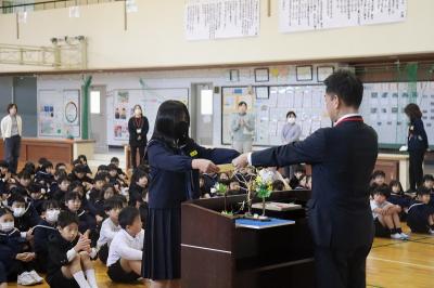 6年児童が代表で受け取りました。