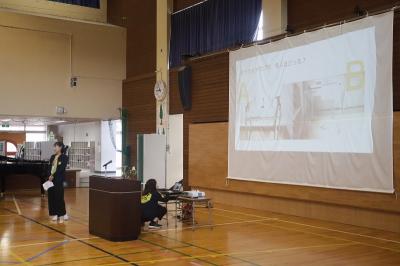 選挙について、クイズをまじえ分かりやすく教えていただき、実際に(仮)津幡町長選挙に投票しました。