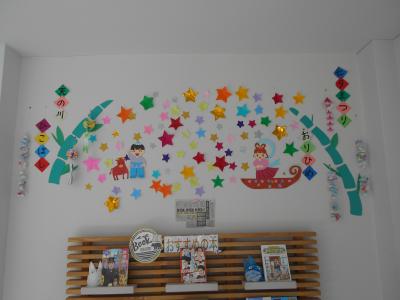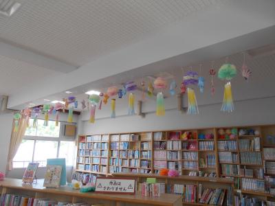 初夏の飾りで彩られ、涼しげな図書館になりました。