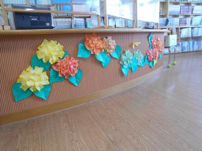図書館の飾りつけが新しくなりました。