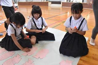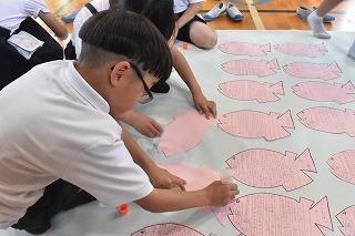そして、その後そのカードを貼り合わせて、大きな魚を追い出せるくらいの大きな魚を作りました!