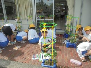 特別支援4学級で育てているとうもろこし、きゅうりがぐんぐん成長しています。
