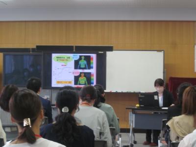 栄養士さんのお話を聞いたあと、ランチルームで1年生の給食の様子を参観していただきました。