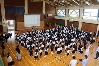 最後は、今月の歌「おはよう」を全校で歌いました。