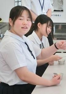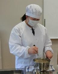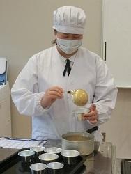 9年生が家庭科の時間に学習したことを踏まえて、幼児のおやつ作りをしました。作ったのは、カスタードプリンです。1人で試行錯誤しながら作りましたが、とても美味しくできました。試食の時は笑顔でした。