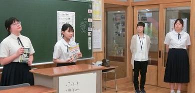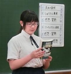 第2回ミニビブリオバトルが行われました。今回は、前回発表しなかった2名の生徒の本の紹介でした。会を重ねるごとに、聞く人を惹きつける発表になっています。発表した2名は、「絵本だったので、どのようにしたら聞く人を惹きつけられるか工夫するのが大変でしたが、うまく話すことができました。」「もっと、心に残った場面について具体的に話せばよかったです。」と振り返りました。