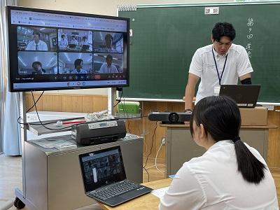 8年生が、社会の授業で三崎中学校と理科の授業で宝立小中学校とオンラインでの交流学習をしました。どちらの授業でも、しっかりと自分の意見や考えを相手に伝えることができていました。また、相手の考えを聞いて、「なるほど」と考えを深めていました。