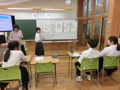 ホワイトボードミーティング®認定講師の横山弘美先生をお招きして、ファシリテーション力を向上させる学習を行いました。「『少数最強』のテーマのもと、文化祭をどのようなものにすればよいか。」についてホワイトボードミーティングを行いました。生徒の皆さんから出された意見がホワイトボードに並び、8年生がファシリテーターとなって収束をさせました。また、7年生がファシリテーターとなって活用をしました。次に、「文化祭でどのような企画をしたいか」について意見を出しました。さまざまな意見があり、一人一人がどのようなことを考えているのかがわかりました。これをもとに文化祭の企画を進めていきます。どのような企画が出されるのか、楽しみです。