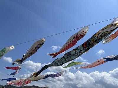 五月晴れの中、鯉のぼりミニフェスティバルが開催されました。大谷小中学校は、昨年度の児童生徒が作った鯉のぼりと今年度生徒が作った鯉のぼりを泳がせてもらいました。大空を悠々と泳ぐ鯉のぼりは、素敵でした。