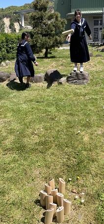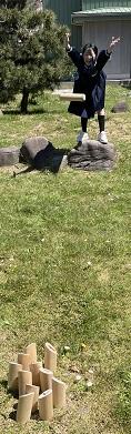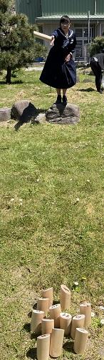 今日のスポーツディは、モルックをしました。お天気が良かったので、外での活動がとても気持ちよかったですね。モルックは、たくさん倒せば勝つわけではないので、いろいろなことを考えて競技するところが面白いですね。