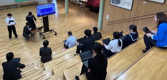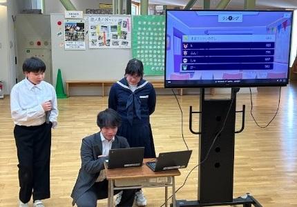 木曜日は「遊びの日」です。これまでスポーツディとしてさまざまなスポーツを楽しんでいましたが、今日は頭の体操として社会科クイズ大会を行いました。7年生がこれまでに社会科で学んだ知識をもとにクロムブックのカフートでクイズをつくり、みんなで問題に挑戦しました。1問終了するごとに順位が発表され、どんどんやる気が高まり、かなりの難問に苦戦しながらも楽しい時間を過ごすことができました。7年生は「出題する方が楽しい。また、勉強してクイズ大会をやりたい。」と言っていました。