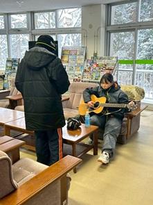 給食後に、9年生と音楽の先生とで、ギターとリコーダーによる演奏会を行いました。曲は「キセキ」です。とても素敵な演奏で、アンコールの声が沸き起こりました。