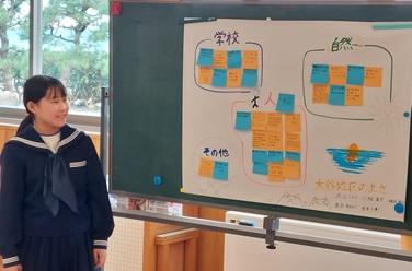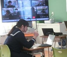 9年生は、宝立小中学校とのオンライン交流授業を行いました。道徳の授業で考えを交流しました。同じような意見でも、理由や根拠が違っていたり、考え方が違っており、多様な意見に触れることができました。とても有意義な時間でした。