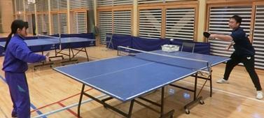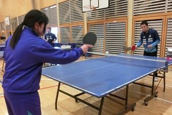 金沢ポートさんの方から、2名の方をお迎えし、卓球教室を行いました。4名の生徒は、マンツーマンでフォアの打ち方、バックの打ち方などを教えてもらいました。また、フットワークの練習の方法やサーブの時のラケットの持ち方など細かいところまで詳しく学びました。生徒からは「直接教えてもらい、手の角度や足の動きなど、とても分かりやすかった。バックの打ち方を教えてもらった通りにすると、めちゃくちゃ打ちやすかった。」「教えてもらって、できなかったことができるようになり、とても楽しかったです。」という感想が聞かれました。