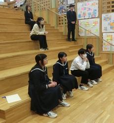 学校運営協議会の委員の方々に授業を参観していただき、生徒も一緒に学校運営協議会の熟議を行いました。学校公開等もあるのですが、なかなか日頃、地域の方々が授業を参観することがないので大変良い機会となりました。学校運営協議会の熟議には、兵庫教育大学 澤野教授を招聘しました。それぞれの立場の方の考えを聞くことで、生徒の視野が広がりました。