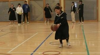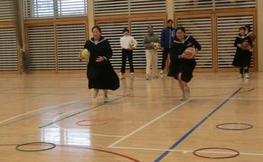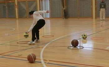 今日のスポーツはビンゴです。3×3のマスにビンゴになるようにボールを置いていきます。スピードと頭脳をフルに使い、相手のグループがビンゴにならないように、自分たちのグループがビンゴになるようにボールを置いたり、移動させたりします。ボールを持って走っていくと、どこに置けばよいか判断できなくなるということが多々あり、体力だけでは勝つことができないゲームだとわかりました。次はもっと駆け引きのある、楽しめる試合ができるようになれば良いなと思いました。