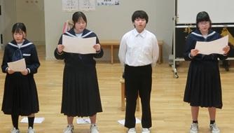 16日から9年生がU16陸上競技大会に出場するため、三重県に向かいます。今日は、7年生、8年生から健闘を祈って手作りのお守りが手渡されました。9年生からは、「ありがとうございます。目標を達成できるようにがんばります。」というあいさつがありました。