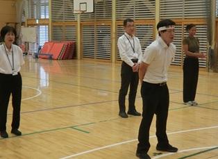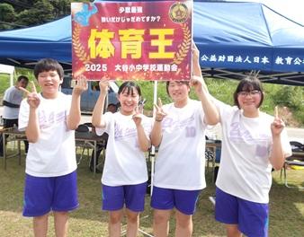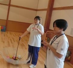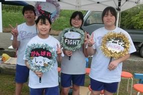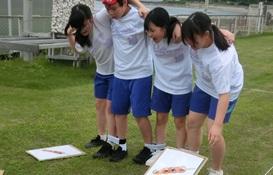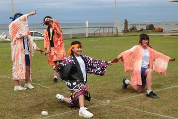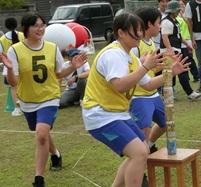 雨が降るのかとドキドキしながら迎えた朝でした。曇り空でしたが、雨が降っていないことに、みんなで作った「てるてる坊主」のおかげだと思いました。開会式の前には少し雨がありましたが、その雨も通り雨でした。馬緤町のグラウンドで行われた運動会は、開会式の力のこもった選手宣誓で始まりました。1人1競技を考案し、試行錯誤を繰り返し、工夫した競技では、生徒VS教員VS地域保護者で争われました。また、生徒4名によるYOSAKOIでは、新たにチャレンジ企画があるなど、新鮮なものでした。運動会の最後は、馬緤町の砂取節保存会の皆さまの演奏による輪踊りで締めくくりました。優勝して体育王の称号を得たのは、生徒チームでした。とても楽しい体育祭でした。