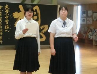 後期の委員会がスタートし、放送委員と企画委員のメンバーが変わって、初めての集会となりました。前期から引き継いだことと、これから工夫したいとこを発表しました。後期の委員会活動も活発にしてほしいです。
