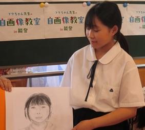 3回目となる自画像教室を開きました。自画像を描くことで自分を観察する目を磨くことをめあてにしています。みんな黙々と自画像に取り組み、仕上げることができました。1回目、2回目の自画像と比べると、はるかに上手になっていました。お世話していただいた、ふくちゃん先生、青山さん、マテックス株式会社の皆さま、どうもありがとうございました。とても良い学習の時間となりました。