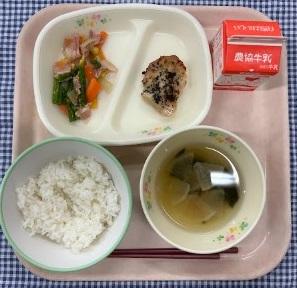 今日の給食献立は、白ごはん・ひじきのマヨスパサラダ・よせなべ風汁・牛乳でした。