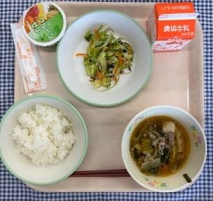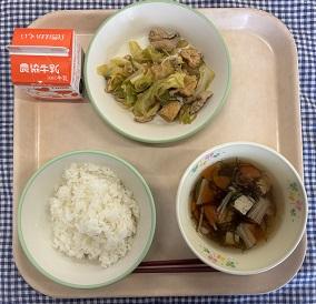 今日の給食献立は、白ごはん・ホイコーロー・もすくの中華スープ・牛乳でした。