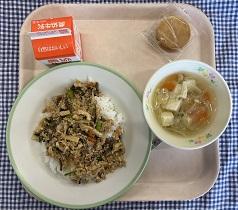 今日の給食献立は、ビビンバ・豆腐の中華スープ・今川焼・牛乳でした。