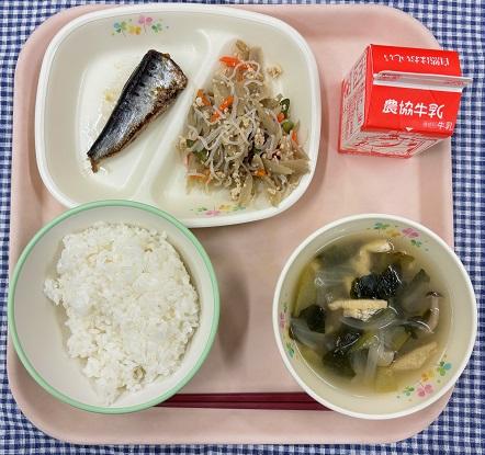 今日の給食献立は、白ごはん・いわしのみぞれ煮・きんぴらごぼう・小松菜のみそ汁・牛乳でした。