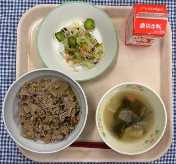 今日の給食献立は、能登豚焼肉丼・きくらげと野菜の酢の物・大根のみそ汁・牛乳でした。
