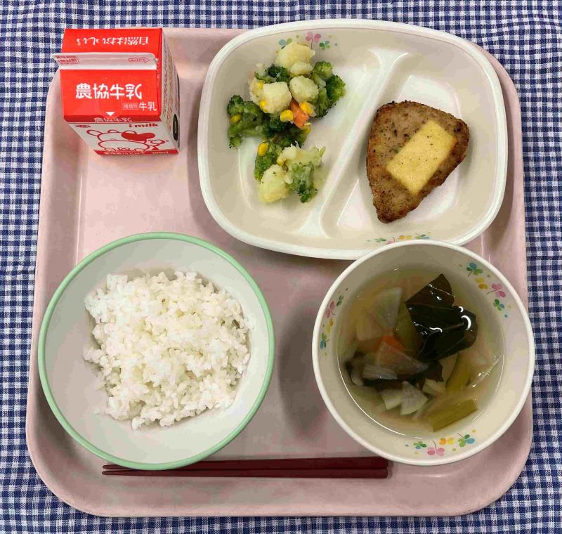 今日は、午後、授業参観があります。給食をたくさん食べてパワーをつけたいです。なんと今日はみんなが大好きなハンバーグです。これで午後もばっちりです。