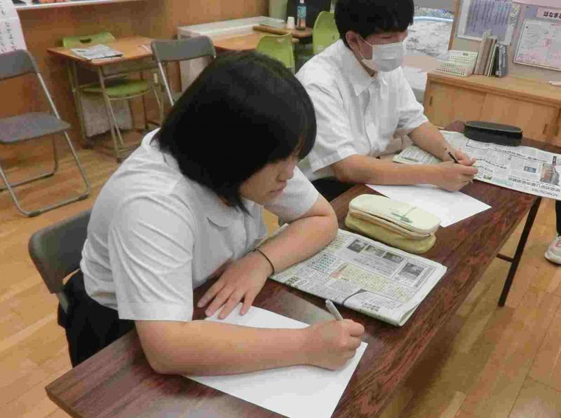 北國新聞社の記者の方を講師にお招きし、分掌の書き方や見出しの付け方を学びました。文章を書く際のコツを教わった後、それぞれに作文を書きました。今後、教わった内容を参考に、すず広報の学校紹介を掲載する予定です。