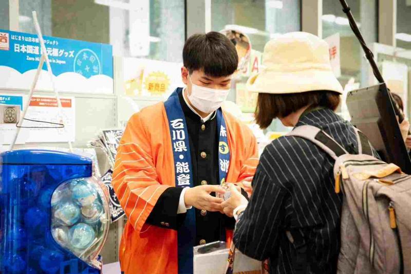 いよいよ大谷ガチャを販売する日が来ました。7年生と8年生の発案により、5月から取り組み始めた企画でした。6年生~9年生で力を合わせて制作しました。珠洲市の親子議会では9年生が堂々と取組を発表し、市長さんから「まずは、珠洲市の道の駅に置いてはどうでしょうか」という答弁をいただきました。そして、本日道の駅「すずなり」に置いて販売することができました。のぼり旗を準備し、珠洲市の観光交流課から貸していただいたそろいの法被を着て、対面で販売しました。はじめは緊張してなかなか声が出なかったのですが、だんだんと買ってくれた方とコミュニケーションをとることができるようになりました。「ニュースを見てかほくから買いに来ました。」という方など、遠くからも買いに来てくださり、とても感謝しています。約70個のガチャは1時間30分で完売いたしました。達成感のある時間でした。