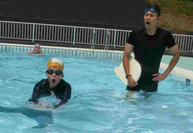 今年度初の水泳の授業が飯田小学校のプールでありました。とても良いお天気で、プールの水が気持ちがよい絶好の日になりました。6年生の日頃の行いが良いからでしょう。直小学校の5・6年生と一緒に楽しく授業ができました。6年生は「今日のプールでは息つぎの技を習得しました。次はもっと良い息つぎの方法を見つけたいです。」「今日のプールでは顔を長く水につけられるようになりました。とても楽しくて、プールの時間が短く感じました。」と振り返っていました。