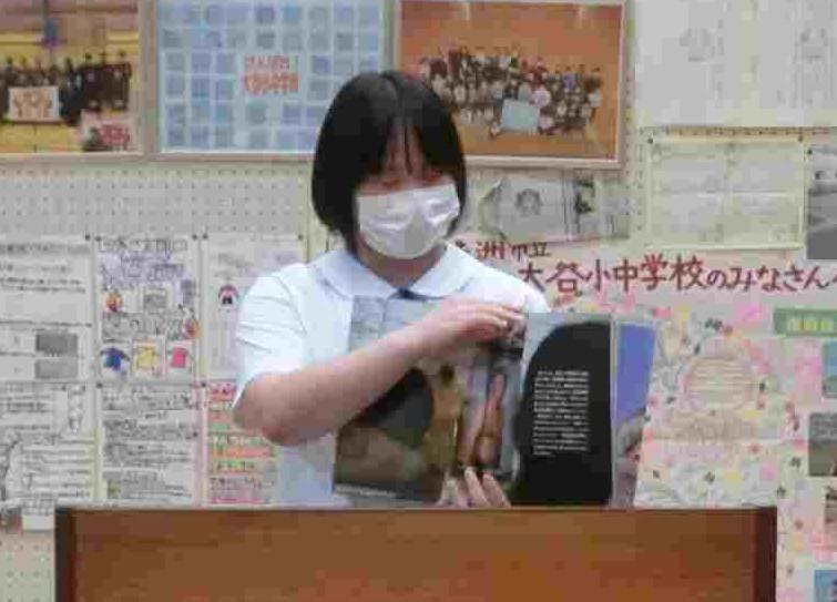 読書量の豊かな児童生徒の表彰のために、大谷子どもを育てる会・会長の丸山様と公民館主事・南様がご来校くださいました。学校全体として読書量の多かったみふゆさん、ひなさんが表彰され、「本を読むと心が落ち着きます。これからもたくさん本の世界に触れたいです。」とお礼の挨拶を行いました。学年ごとの表彰も行われ、副賞に図書券を頂きました。いつも子どもたちのために、ありがとうございます。