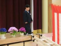 りゅうきさんの入学をみんなでお祝いしました。名前を呼ばれると大きな声で返事をすることができていました。問いかけにもしっかりと応じ、にこにことした表情で、みんなを幸せな気持ちにしてくれていました。らいきさんとあずささんが歓迎の言葉を述べました。みんなで仲良く楽しくお勉強できそうです。入学式後に、桜ケ平様より、ランドセルカバーと反射たすきの贈呈が行われました。りゅうきさっとこうたろうさんが代表で受け取りました。「気を付けて登校してください。」の声に「はい」「ありがとうございます」と返事をする姿がさわやかでした。