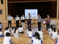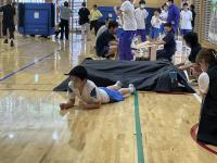 PTA保健安全委員会主催で安全教室を開催いたしました。NPO法人体験型安全教育支援機構の清永様をお迎えし、地震から命を守る方法について学ぶ時間となりました。地域の方々にもご参加いただき、ガラス破片等の障害物を想定した中での行動や負傷者に声をかけて共に避難する方法について、実際にやってみることで、安全な避難行動について学ぶことができました。8秒での安全確保の大切さと様々な姿勢について、子どもたちは楽しく確実に学ぶことができていました。お世話いただいた皆様、ありがとうございました。