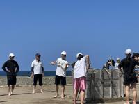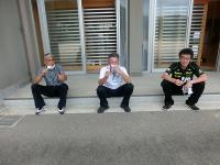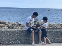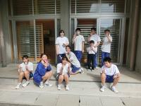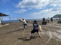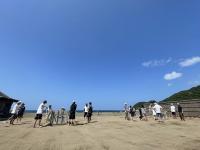 後期課程と先生方でバレーボール大会を行いました。万呂先生にご指導いただいたおかげで、歓声が飛び交い、大いに盛り上がりました。職員チームは、なぜか最下位・・・でした。調理員さんからの差し入れのアイスクリームを食べながら、潮風にふかれながら休憩した時間も楽しそうでした。早く授業を終えた1年生のりゅうきさんも飛び入り参加で、楽しんでいました。