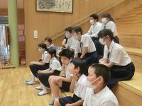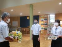 無事に1学期の終業式を行うことができました。1学期の始業式にお願いいした3つのことについてペアで振り返りを行ってもらいました。にぎやかな振り返りの光景があり、やり遂げた様子が伝わってきてうれしかったです。更に、主体的に応募して賞を頂いた作文を紹介し、夏休みにチャレンジしてほしいことについて伝えました。次に、さえ先生の激励会を行いました。7月28日から産休に入られます。子どもたちが挨拶し、記念の色紙をプレゼントしました。また、6月・7月に体育のご指導を頂いた万代呂先生へのお礼の会を行いました。ひなさんとらいきさんが感謝の言葉を伝え、花束と記念写真を贈呈しました。ひなさんの英検合格の表彰も行うこともでき、有意義な時間となりました。最後に生徒指導担当者から41日間の夏休みの過ごし方についてお話がありました。みなさんにとって素敵な夏となりますように。