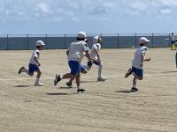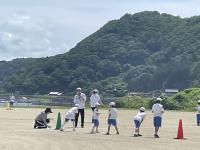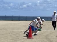 前期課程の体力アップをねらって、6月からへとへと大作戦が展開されていました。2限目と3限目の休み時間に持久走的な運動を行うというものでした。この日は、その取組の成果を検証する日となり、グラウンドでの記録会を行いました。この作戦を行う前の記録と比較することとなっています。気持ちのいい潮風の中で、子どもたちは元気に走り切りました。記録会が終了した後も広いグランドを駆け回っていました。記録はだんだん広場に掲示いたします。