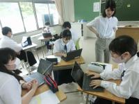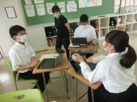 8年生と6年生が珠洲市内の学校とオンラインで授業を行いました。協働的な学習の充実のため、多様な意見や考え方に触れる機会としてオンラインでの学習を行っています。今日は、社会科・道徳・総合的な学習の時間で行いました。児童生徒の考えを深めることができました。