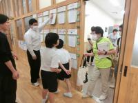 今日は、三崎中学校と交流学習を行いました。国語の授業では、ペア学習をしたり、机を合わせて4人で話し合ったりして、協働して学ぶことで、自分の考えを深めていました。また、総合的な学習の時間では、大谷チャームの制作を一緒に行いました。三崎中学校の生徒のみなさんに作り方やコツを教えることで、自然と会話が弾んでいました。