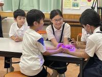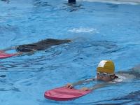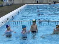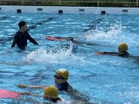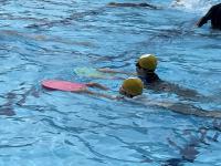前期課程がプール学習を行いました。天候が心配されましたが、ちょうど晴れ間が広がる時間帯で体験することができました。潜る練習や浮く練習、バタ足の練習に取り組み、にこにこの子供たちでした。プールサイドで見守ってくれていた養護教諭の先生とグータッチをしてプール学習を終えました。