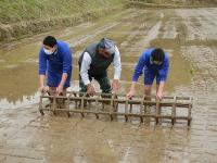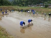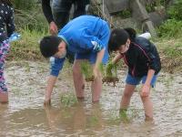 黒米の田植えを行いました。少し肌寒い日ではありましたが、例年以上に子どもたちと職員の歓声が響く田植えとなりました。丁寧に「苗様を授ける」姿、泥だらけの手でお互い抱きつき合って泥をつけあって笑い合う姿など、みんなで楽しむことができていました。子どもたちの田植えを応援してくださる方々のおかげで、和やかに気持ちのいい田植えとなりました。手を洗ったり足の泥をきれいに洗いながす水場の設定、休憩時のお茶やお菓子の準備、お昼のおにぎりなど、大事にしていただける優しさは、毎年変わることがありません。準備をして、笑顔で迎えてくださり、笑顔で見送ってくださる地域の方々、保護者の方々、平家の里構想研究会の皆様に感謝申し上げます。本当にありがとうございました。